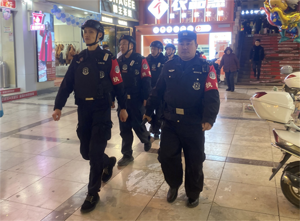 華燈初上,貴州省貴陽市南明區(qū)青云市集人頭攢動。位于市集大門口的警務(wù)站警燈閃爍,一隊隊“藏藍身影”來回穿梭,守護著城市的煙火氣。