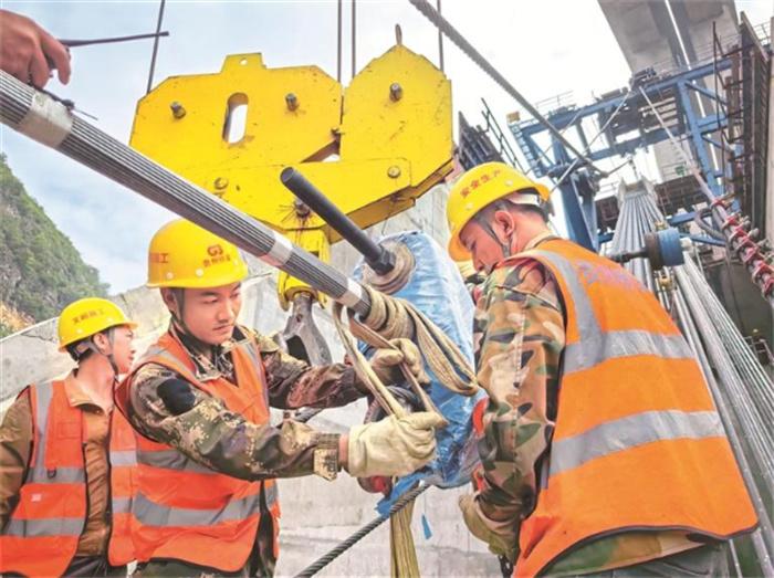 6月6日,經(jīng)過(guò)8小時(shí)的牽引架設(shè),由貴州交建集團(tuán)所屬橋梁集團(tuán)承建的在建世界第一高橋——花江峽谷大橋第一條智慧主纜索股成功安裝,實(shí)現(xiàn)在2378米長(zhǎng)的主纜上采用光柵光纖(復(fù)合碳纖維絲)進(jìn)行應(yīng)力監(jiān)測(cè),該應(yīng)力應(yīng)變監(jiān)測(cè)技術(shù)在大跨徑懸索橋上的運(yùn)用屬國(guó)際首創(chuàng),邁出了懸索橋智能健康監(jiān)測(cè)創(chuàng)新賦能的關(guān)鍵一步。