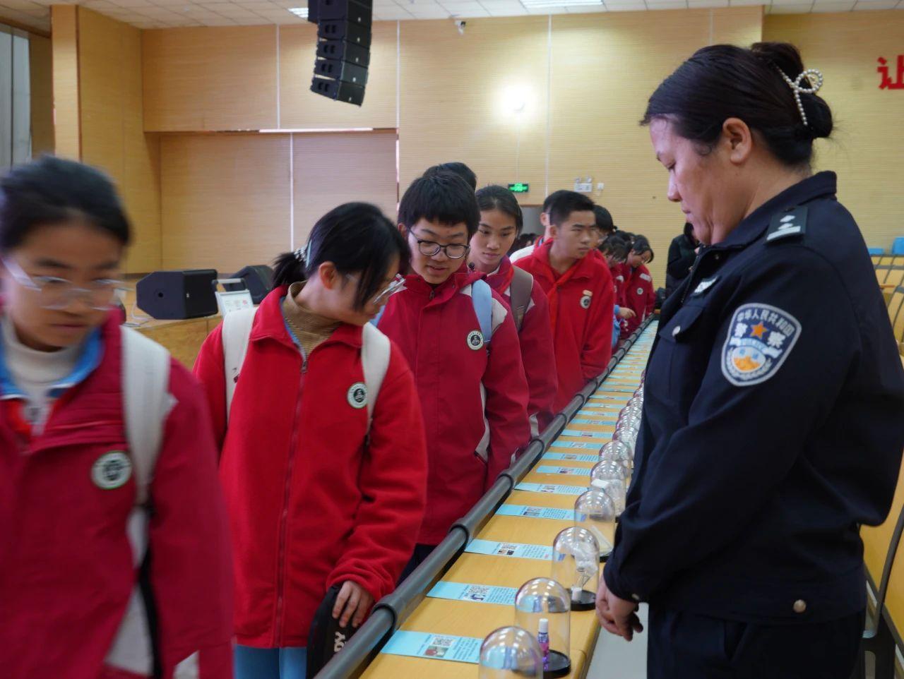 活動中,民警向?qū)W生們介紹了《中華人民共和國未成年人保護法》相關(guān)法律法規(guī),校園欺凌的定義、類型、帶來的巨大危害,結(jié)合現(xiàn)實案例教會同學們當面臨校園欺凌侵害時的應急措施和善后處置,并組織觀看反校園欺凌微電影?;顒幼詈螅瑤ьI(lǐng)學生參觀了毒品仿真模型,并現(xiàn)場解答提問,幫助同學們了解毒品危害、辨別毒品偽裝、增強防范毒品侵害的能力。