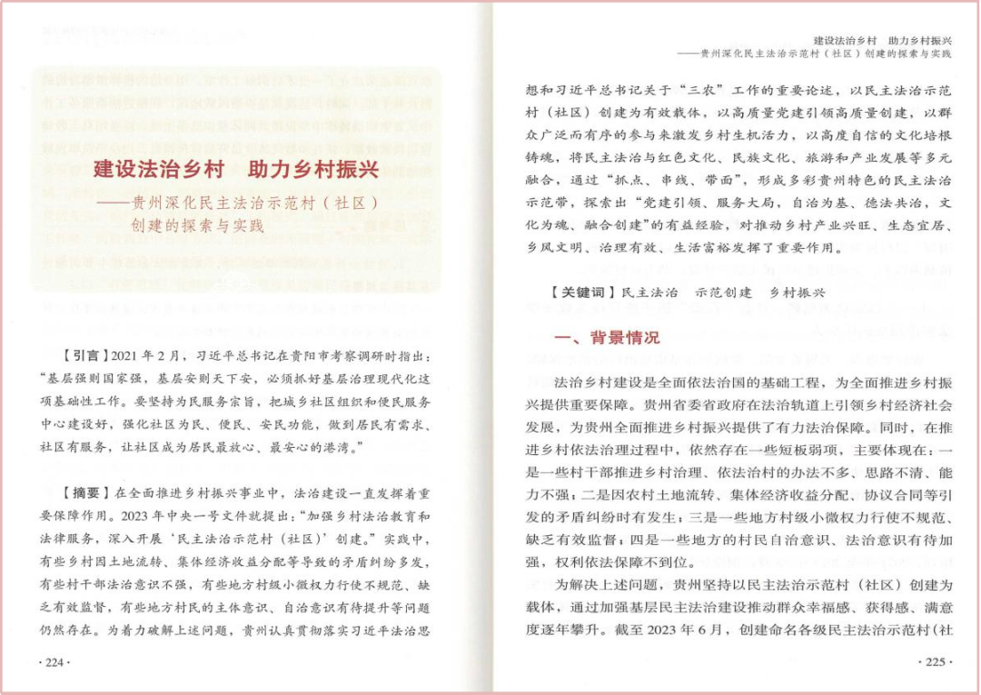 《建設(shè)法治鄉(xiāng)村 助力鄉(xiāng)村振興—貴州深化民主法治示范村(社區(qū))創(chuàng)建的探索與實(shí)踐》入選第六批全國(guó)干部學(xué)習(xí)培訓(xùn)教材。