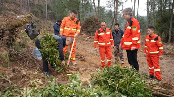 “我們今天種植了紅花木蓮,為木蘭科木蓮屬常綠喬木,綻開后花瓣背面為紅色或紫紅色,因花形似蓮,生于木上而得名,是優(yōu)良園林綠化樹種?!辟F州省國有龍里林場負責人向記者介紹。