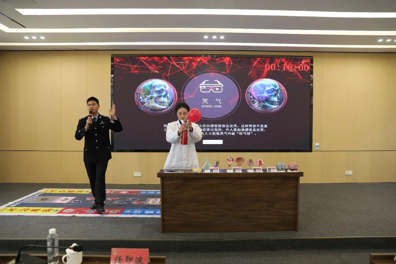 比賽現(xiàn)場,參賽選手以“識毒、辨毒、防毒”三個角度破題,聚焦禁毒戒毒宣傳教育“八進”工作,通過禁毒戒毒主題宣講和團體心理輔導(dǎo)兩個環(huán)節(jié)內(nèi)容依次進行展示。各參賽隊伍緊扣當下熱點話題,突出精準性和實效性,形式涵蓋情景劇、線上直播、“抽盲盒”、音樂放松療法等,內(nèi)容新穎,互動性強,充分展現(xiàn)出各支參賽隊伍的專業(yè)功底與智慧創(chuàng)新,為下步多元化開展禁毒宣傳教育工作打下堅實基礎(chǔ)。