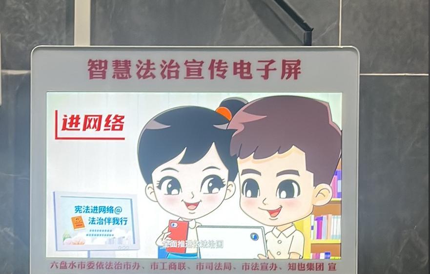 2018年,知也集團投資開設(shè)了1200余塊社區(qū)法宣欄,為市民提供了便捷的法治宣傳平臺。這一舉措不僅豐富了普法形式,也有效提升了市民的法律意識?!暗入娞莸?0秒能改變什么?”在六盤水市多個小區(qū)電梯旁都有一塊智慧法治宣傳電子屏,在居民等電梯的短暫時間內(nèi),循環(huán)播放法治宣傳短片,讓法律知識潛移默化地深入人心。這種“家門口”的普法陣地,不僅提高了法治宣傳的覆蓋率,也營造了濃厚的法治氛圍。在法治宣傳陣地建設(shè)中,嚴鑫探索出了“政企合作”的新模式。政府出政策、出資源,企業(yè)出資金、出運營,這種模式既解決了政府資金不足的難題,也為企業(yè)發(fā)展拓展了空間。
