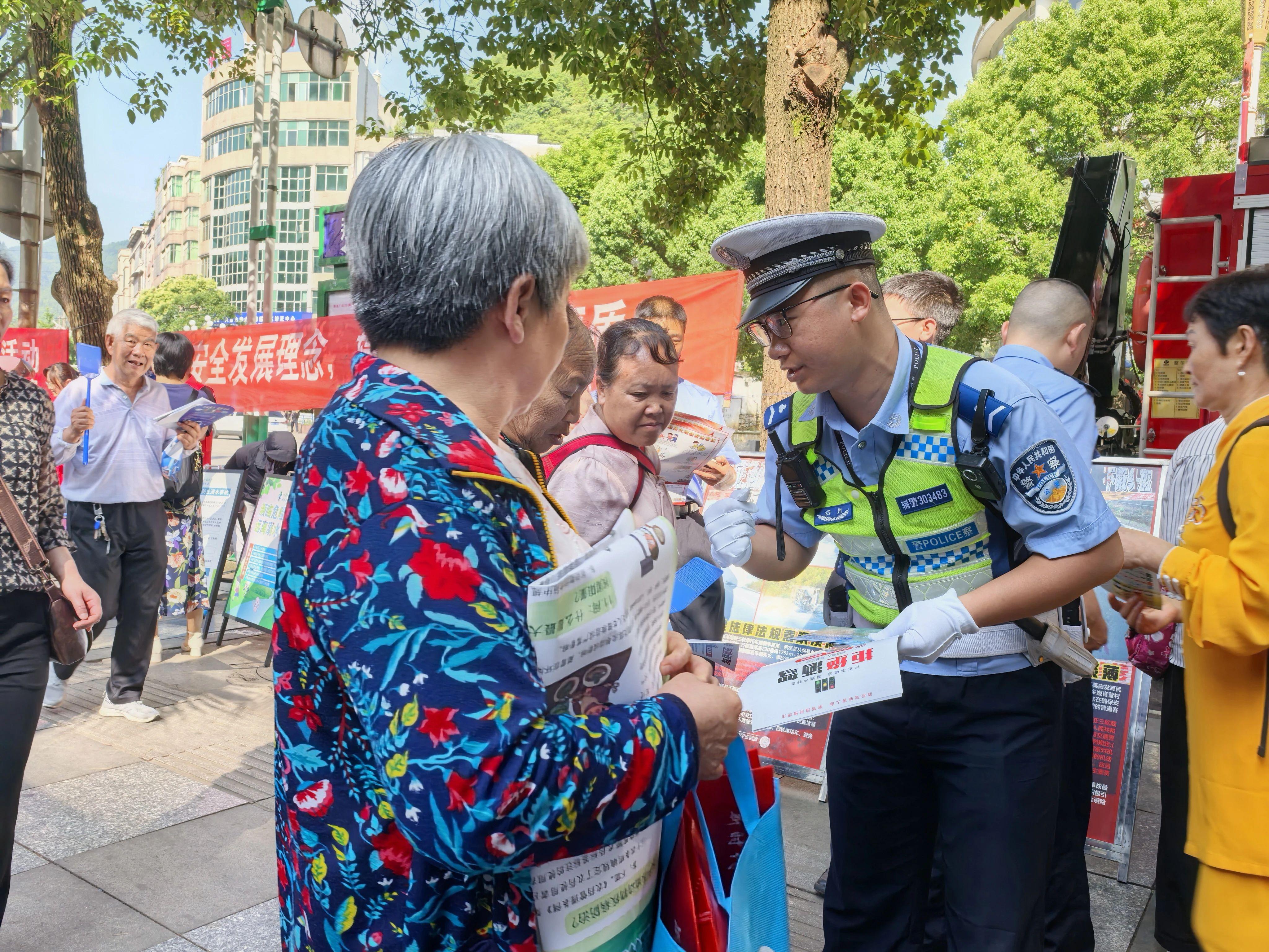 活動(dòng)現(xiàn)場(chǎng),氣氛熱烈而有序。民警通過(guò)多種形式向過(guò)往群眾宣傳安全生產(chǎn)相關(guān)知識(shí)。交警部門重點(diǎn)圍繞道路交通安全展開宣傳,現(xiàn)場(chǎng)設(shè)置了交通安全宣傳展板,展示了近年來(lái)因不遵守交通規(guī)則而導(dǎo)致的交通事故案例,以直觀的畫面讓群眾深刻認(rèn)識(shí)到遵守交通法規(guī)的重要性。同時(shí),交警還向群眾發(fā)放交通安全宣傳手冊(cè),倡導(dǎo)大家遵規(guī)守法明理、安全文明出行。治安部門則聚焦消防安全、防溺水安全以及防電信詐騙等內(nèi)容開展宣傳,提醒群眾提高自身防范意識(shí)和應(yīng)急處置能力。