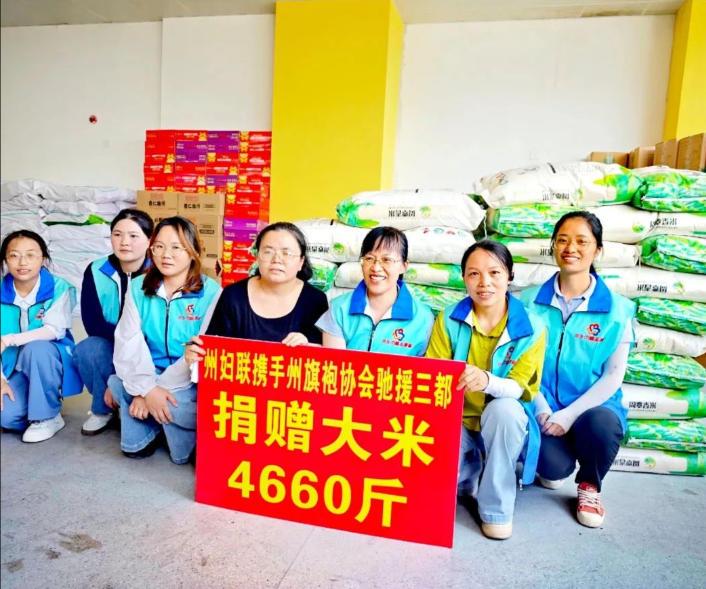 同時(shí),充分發(fā)揮橋梁紐帶作用,聯(lián)動(dòng)州旗袍協(xié)會(huì)發(fā)起愛心募捐行動(dòng)。通過線上線下多渠道踴躍捐款,兩天內(nèi)籌集善款1萬余元。根據(jù)三都縣物資需求,專項(xiàng)采購(gòu)大米送至災(zāi)區(qū),有效緩解受災(zāi)群眾的“糧袋子”難題。