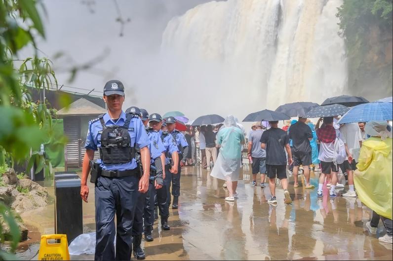 而這樣的瞬間,在年均接待游客580萬(wàn)人次的世界級(jí)景區(qū)黃果樹瀑布每天都在上演,景區(qū)治安派出所的6名民警和53名輔警以“景警融合”的模式,守護(hù)著115平方公里的景區(qū)安全,成為一道獨(dú)特而亮麗的風(fēng)景線。