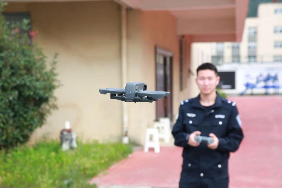 圖為民警使用無人機(jī)進(jìn)行培訓(xùn)操作。