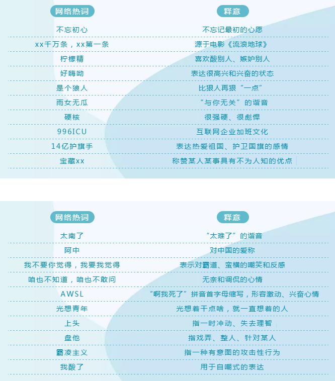 法制網(wǎng)監(jiān)測中心(ID:fzwyqzx)綜合國家語言資源監(jiān)測與研究中心、《咬文嚼字》雜志、《語言文字周報》等權(quán)威發(fā)布,選取了2019年較有代表性的20個網(wǎng)絡(luò)熱詞。通過對這些網(wǎng)絡(luò)熱詞所反映的新特征進(jìn)行分析,總結(jié)我國網(wǎng)民輿論心態(tài)和網(wǎng)絡(luò)情感變化的四點新趨勢。