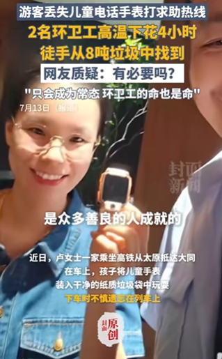 7月13日,“翻垃圾找兒童手表被質(zhì)疑浪費人力”話題沖上微博熱搜第一。引發(fā)爭議后,大同市城管局副局長回應(yīng)稱,此前也有過幫市民尋找失物的先例,此次并非特殊個例,“只要老百姓有需求,我們肯定去做”。該言論再次激發(fā)網(wǎng)民不滿。多數(shù)網(wǎng)民認(rèn)為“有求必應(yīng)”也要區(qū)分輕重緩急。同時,圍繞游客身份衍生出特權(quán)猜測,有網(wǎng)民爆料其為“深圳市寶安區(qū)人民法院政治部主任盧某”“深圳紀(jì)委干部”,對此涉事法院緊急辟謠。主流媒體圍繞公共服務(wù)邊界問題進(jìn)行探討,如《大河報》刊文指出,當(dāng)個別需求輕易撬動巨大公共力量時,公共資源或?qū)⒚媾R被無度索取的危機;央廣網(wǎng)認(rèn)為,相關(guān)管理部門應(yīng)建立更科學(xué)的價值評估體系,在滿足民眾需求與資源優(yōu)化間找到平衡。