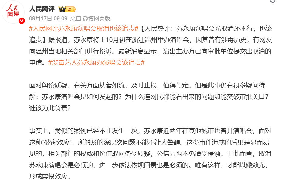 6.蘇永康演唱會(huì)主辦方申請取消,涉毒藝人不能復(fù)出是底線
