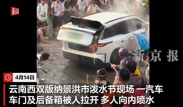 據(jù)新京報4月15日報道,4月14日,云南西雙版納景洪市潑水節(jié)現(xiàn)場一汽車車門及后備箱被人拉開,多人向內(nèi)噴水。汽車駕駛員妻子稱,當(dāng)時她坐在副駕,淋水后車內(nèi)部冒煙,她計劃將車送去檢查,如果檢查出問題會報警。該女子表示,多人向內(nèi)噴水時自己父母坐在車內(nèi),全身被淋濕。事發(fā)地所在街道辦工作人員稱,潑水節(jié)現(xiàn)場有相關(guān)部門工作人員負(fù)責(zé)制止不文明行為。4月16日,極目新聞從西雙版納有關(guān)部門獲悉,當(dāng)?shù)鼐秸藢嵈耸隆?/p>