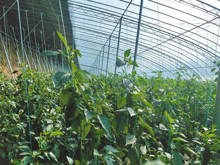 旬邑縣職田鎮(zhèn)萬畝現(xiàn)代設施農(nóng)業(yè)(高山冷涼蔬菜)基地的青椒大棚。記者 梁宇晴 攝