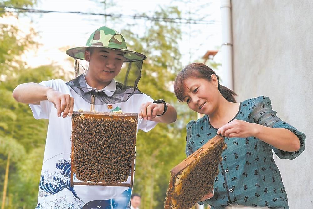 換被套、搬蜂箱、浸黃豆……8月20日,浦城縣管厝鄉(xiāng)黨溪村村民劉全旺一家一早就開(kāi)始忙碌?!翱腿酥形缇鸵胱。€要體驗(yàn)搖蜂蜜做蜂蠟,我母親還打算做浦城特色豆腐丸給客人品嘗?!眲⑷嬖V記者,接待客人的任務(wù)都是由村黨支部領(lǐng)辦的合作社統(tǒng)一安排,他們只管“干活收錢(qián)”,不用費(fèi)心拓展客源、辦理入住、安排車(chē)輛等。