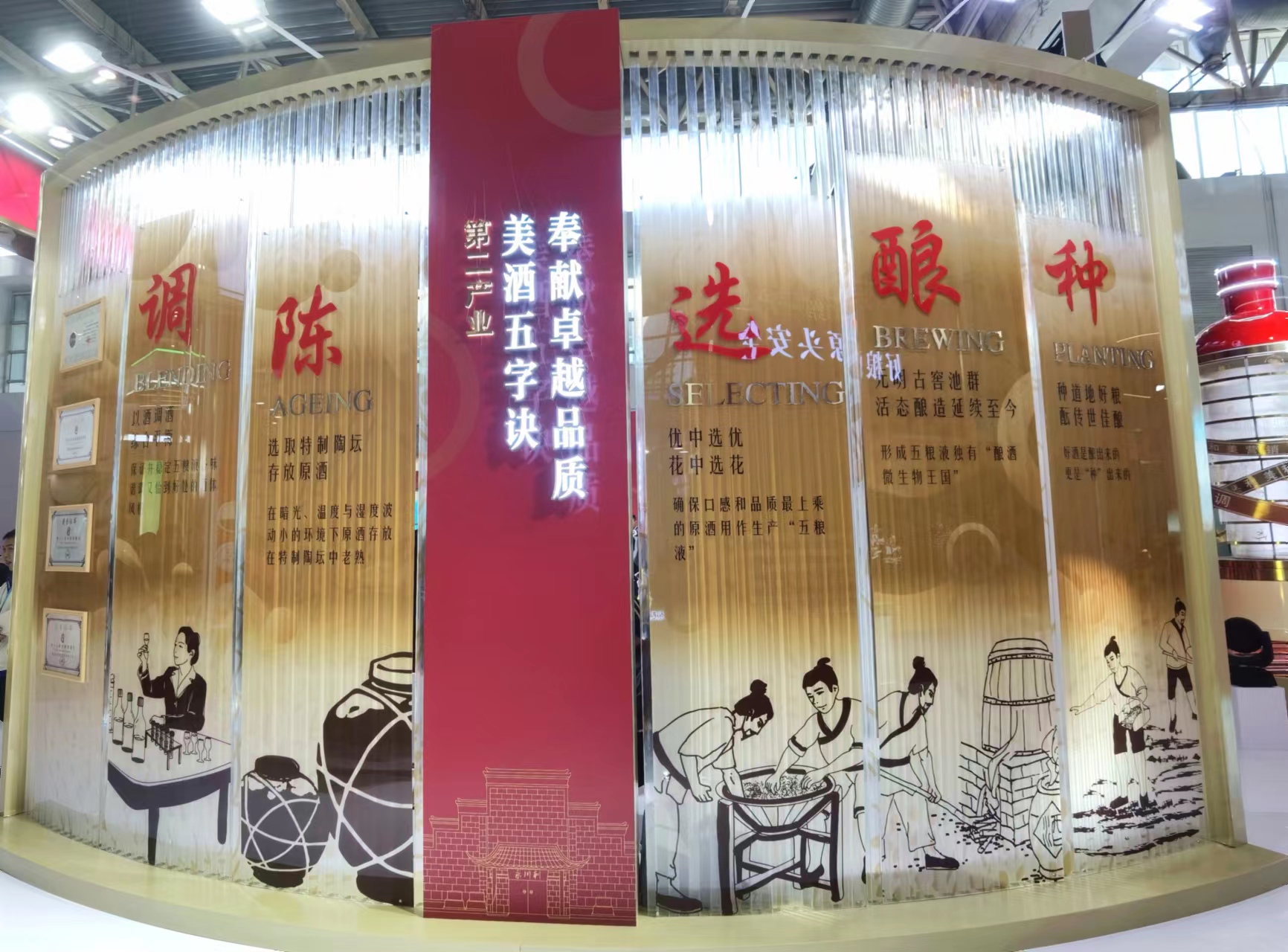 在綠色農(nóng)業(yè)鏈展區(qū)的五糧液展廳,系統(tǒng)呈現(xiàn)了白酒產(chǎn)業(yè)鏈盒、箱、瓶、標、蓋縱深全覆蓋的產(chǎn)業(yè)體系,全景式立體化展示了“從一粒種子到一滴美酒”的生產(chǎn)生態(tài)鏈,“包裝到物流”的產(chǎn)業(yè)供應(yīng)鏈,以及國內(nèi)外營銷網(wǎng)絡(luò)多維“鏈接世界和美”的消費與服務(wù)雙向鏈,“種釀選陳調(diào)”美酒五字訣突出展現(xiàn)了五糧和美釀造的生命鏈,“當日生產(chǎn)、當日發(fā)運、當日品鑒”的自主、可控的運作體系,生動講述了“和美五糧”背后的物流供應(yīng)鏈。