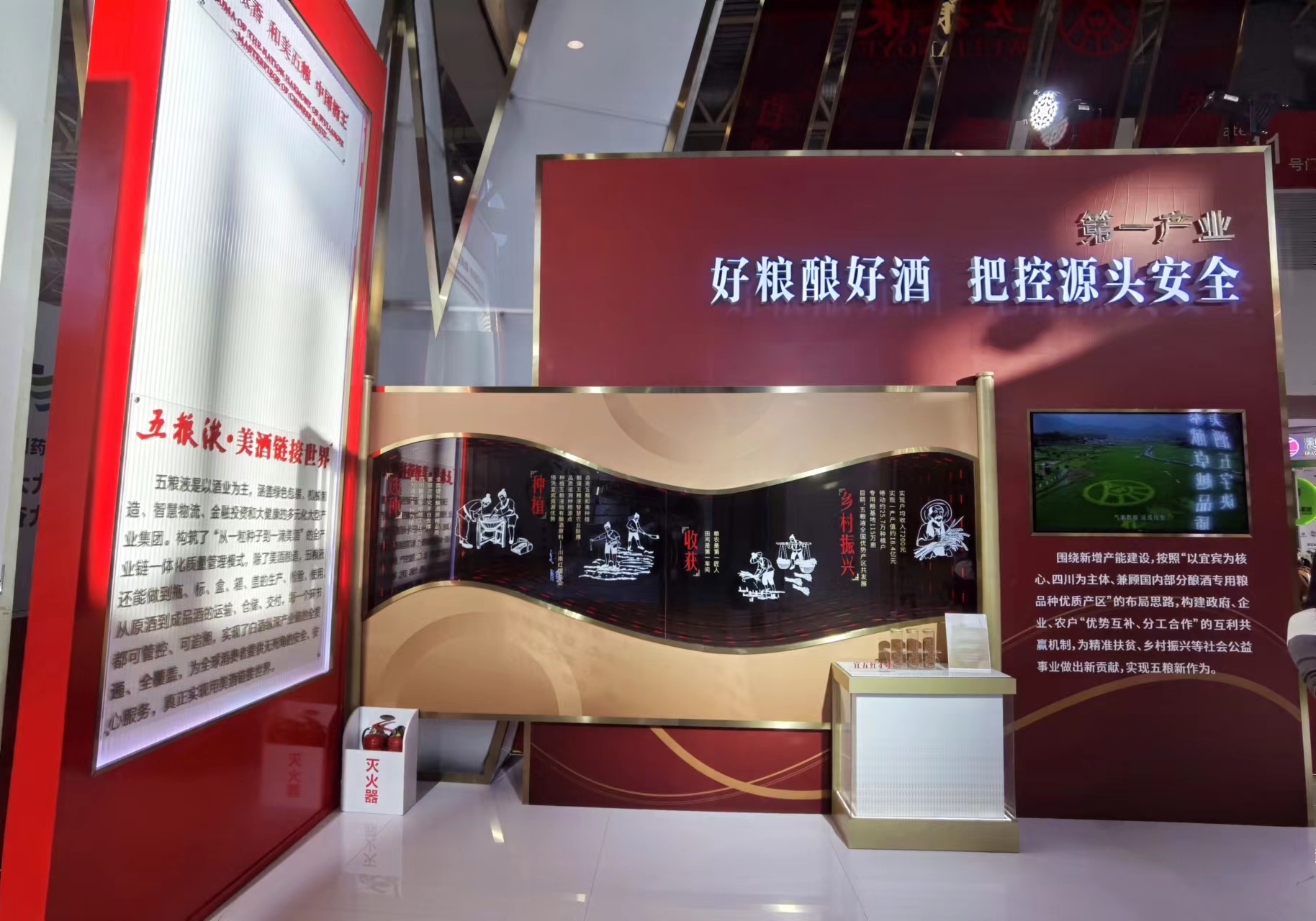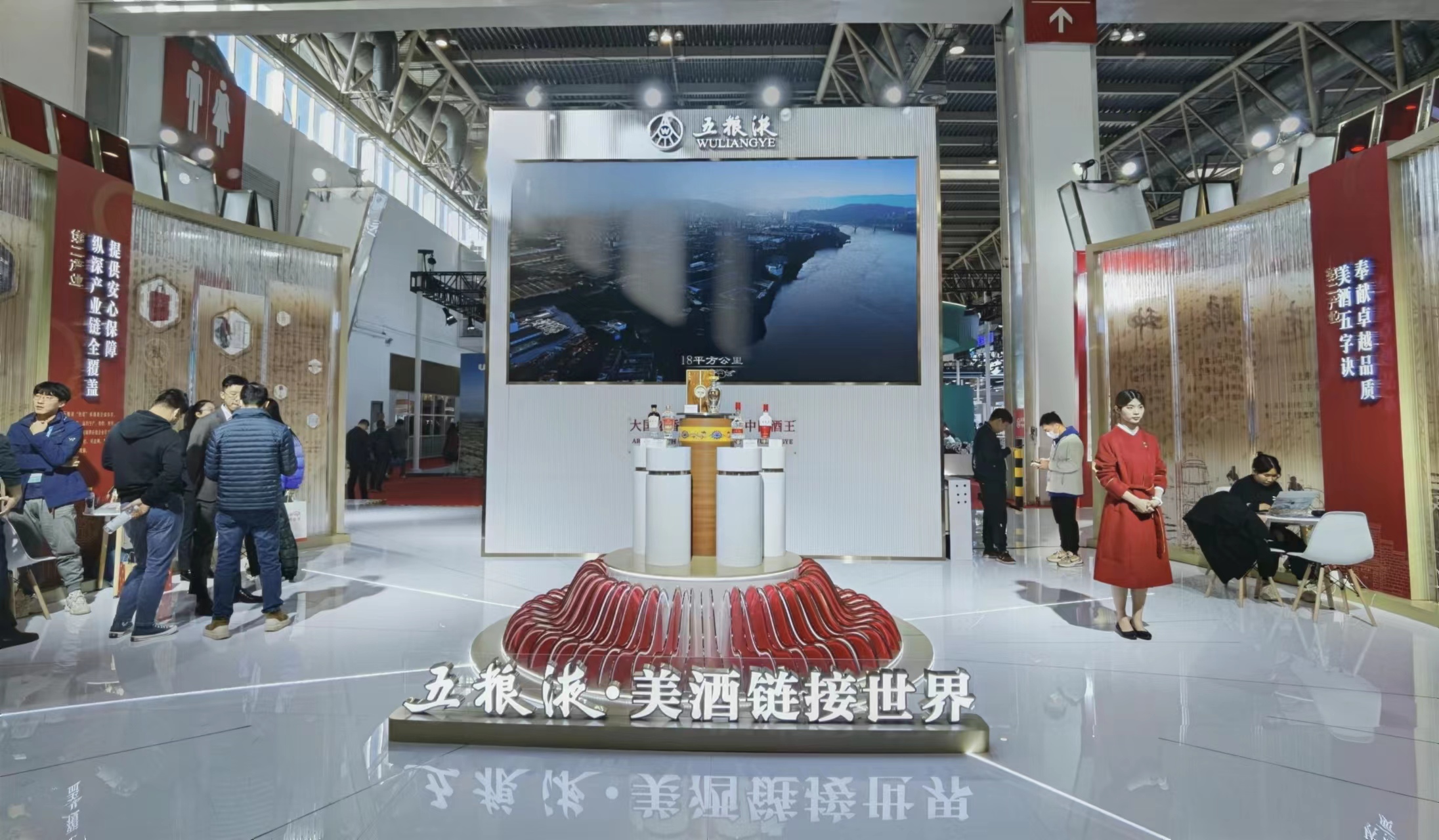 在展廳中心,501五糧液、經(jīng)典五糧液、第八代五糧液、五糧液·紫氣東來等核心產(chǎn)品亮相,精彩呈現(xiàn)五糧液以五糧美酒聯(lián)結(jié)內(nèi)部全產(chǎn)業(yè)鏈,鏈接外部和美世界的和美支撐,打造世界一流企業(yè),共釀美好生活的責任擔當。五糧液將“和美”理念貫穿整個產(chǎn)業(yè)鏈過程中,以和美種植、和美釀造、和美勾調(diào)、和美營銷、和美文化為生產(chǎn)動力,以“包裝、物流”為強大支撐,每一個環(huán)節(jié)都可管控、可追溯,致力于為全球消費者提供安全、安心服務(wù),真正實現(xiàn)用美酒鏈接“和美世界”。