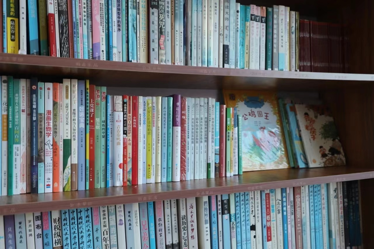 草原書(shū)屋內(nèi),豐富的圖書(shū)擺滿書(shū)架 趙洹 攝