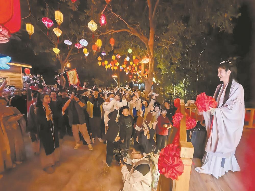 為讓游客有更好的文化體驗,今年元宵節(jié),杏陳鎮(zhèn)聯(lián)合磁窯村策劃了“浪漫元宵·緣定磁窯”沉浸式漢服游園會。當(dāng)晚,身著各式漢服的演員們穿梭在各個景點,用“舞蹈+情景劇”的方式為游客獻上民族舞、古箏演奏、拋繡球等精彩表演。