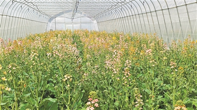 據科研團隊負責人張冬青研究員介紹,科研人員采用精準聚合育種方法,把不同花色基因重新組合,促使油菜花的花色種類不斷更新豐富。目前,團隊已培育出高桿彩色油菜和矮桿彩色油菜不同花色各9種,具有花瓣大、色澤艷、香味濃郁、花量足、產量優(yōu)等特性,觀賞價值和經濟價值全面升級。彩色油菜除了不同花色帶來的視覺沖擊感外,植株健壯、分枝多、產量和含油量接近生產上主栽品種。