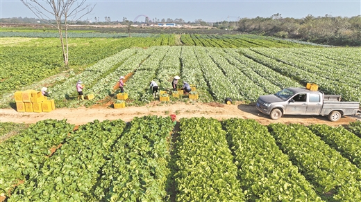 3月22日,位于廣西壯族自治區(qū)貴港市平南縣東華鎮(zhèn)東平社區(qū)西村的蔬菜種植基地里,強(qiáng)干種養(yǎng)專業(yè)合作社負(fù)責(zé)人傅華干正組織村民收菜:“這塊田之前種了水稻,秋收后我們又種植了芥菜、大白菜、菜心等蔬菜共180畝,讓土地得到最大化利用,增加經(jīng)濟(jì)效益,目前蔬菜收入大概5萬(wàn)元?!?/p>