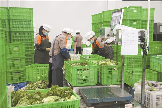 收購(gòu)企業(yè)員工對(duì)蔬菜進(jìn)行分揀、打包