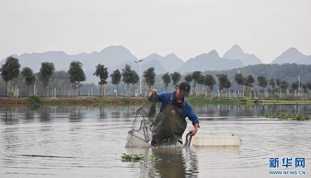 農戶正在捕撈小龍蝦
