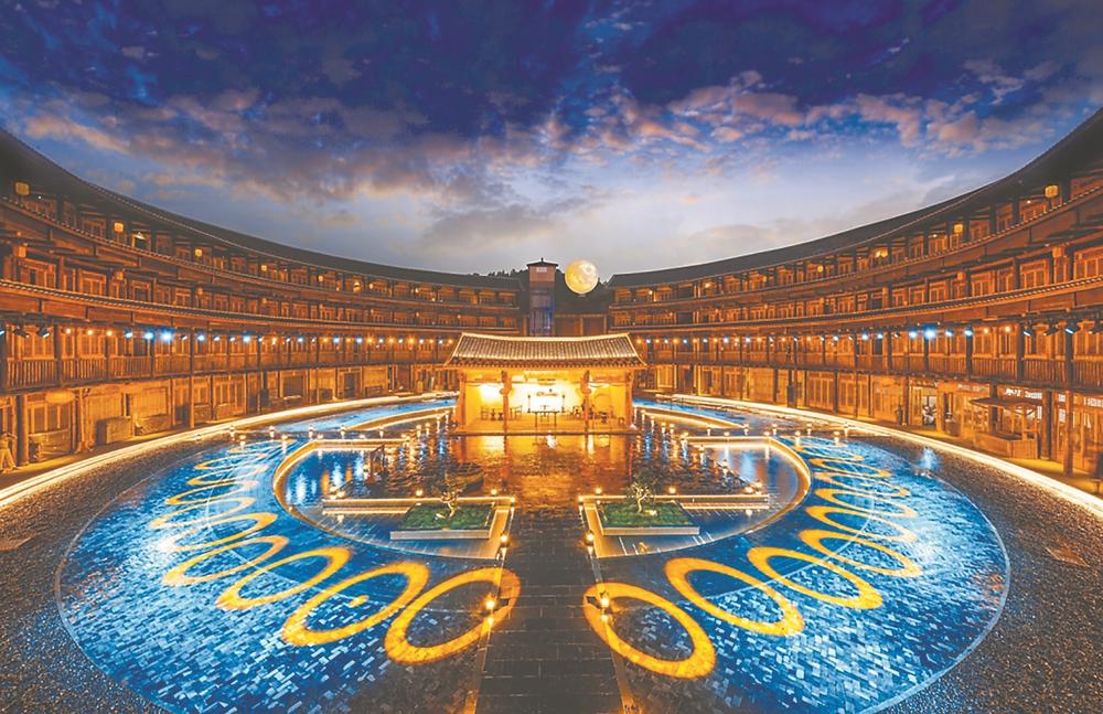 “古”是土樓的外在,“住”是土樓的內(nèi)核。永定還打造了獨特的土樓民宿群。目前完成了南江村朝陽樓、東昌樓、洪坑村昇恒樓、南江村南興樓、新南村長源樓等民宿改造。民宿房間保留了土樓裸露的墻面,傳統(tǒng)農(nóng)耕器具的布置也融合了耕讀文化與現(xiàn)代藝術,住客能親手觸碰建筑肌理,體驗濃厚的鄉(xiāng)村文化。