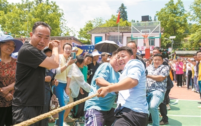 游客在大水鄉(xiāng)后壩村參加鄉(xiāng)村避暑季全民運動會 李光輝 攝