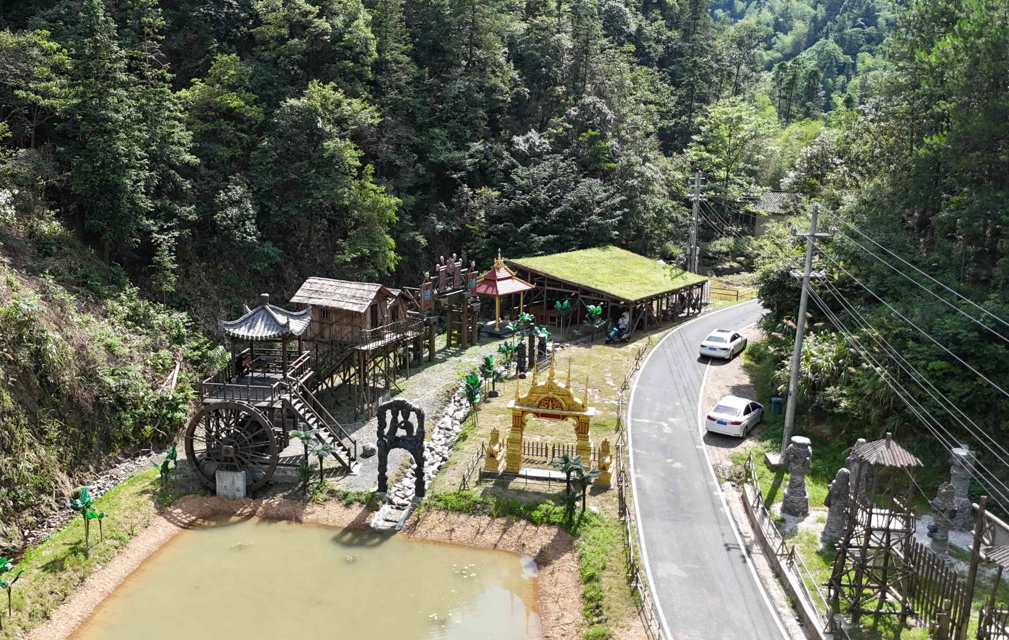 走進紅光村的方坑嶺強鄉(xiāng)富村影視基地,東南亞風格建筑和古代宮廷場景仿佛讓人穿越。在這里,不到一年的時間已經(jīng)拍了4部電影和8部短劇,小山村儼然成了“劇工廠”。