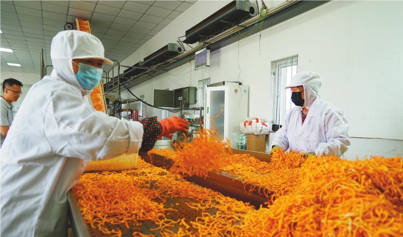 燈塔市眾信農(nóng)業(yè)科技有限公司生產(chǎn)車間里,工人正在烘干北蟲草 記者 嚴佩鑫 攝