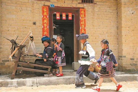 走進(jìn)連山壯族瑤族自治縣福堂鎮(zhèn)太平村委會(huì)金龜村,近年打造的鄉(xiāng)村文化空間——壯瑤傳統(tǒng)風(fēng)貌園一下子就驚艷了游客。在風(fēng)貌園的錦繡非遺館里,游客可以欣賞到上百件明清時(shí)期的珍貴壯錦藏品;在非遺工坊和研學(xué)基地里,游客可以參與研學(xué),沉浸式體驗(yàn)壯錦的編織與文創(chuàng);在染料種植科普?qǐng)@里,游客還可以與自然親密接觸,增長見識(shí)……