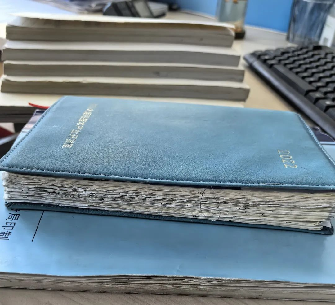 天色漸晚,結(jié)束了一天工作的丁超剛回到了辦公室,筆者注意到他桌子角落堆砌了一摞厚厚的本子,想起上午去社區(qū)時他手里拿的筆記本,筆者好奇地問:“這些本子里都記了什么呀?”他打開本子,一頁頁密密麻麻的文字,都是社區(qū)里的大事兒小事兒,“社區(qū)工作千頭萬緒,我每天都詳細(xì)記錄下來,給老百姓都解決好了,是我最大的心愿。”