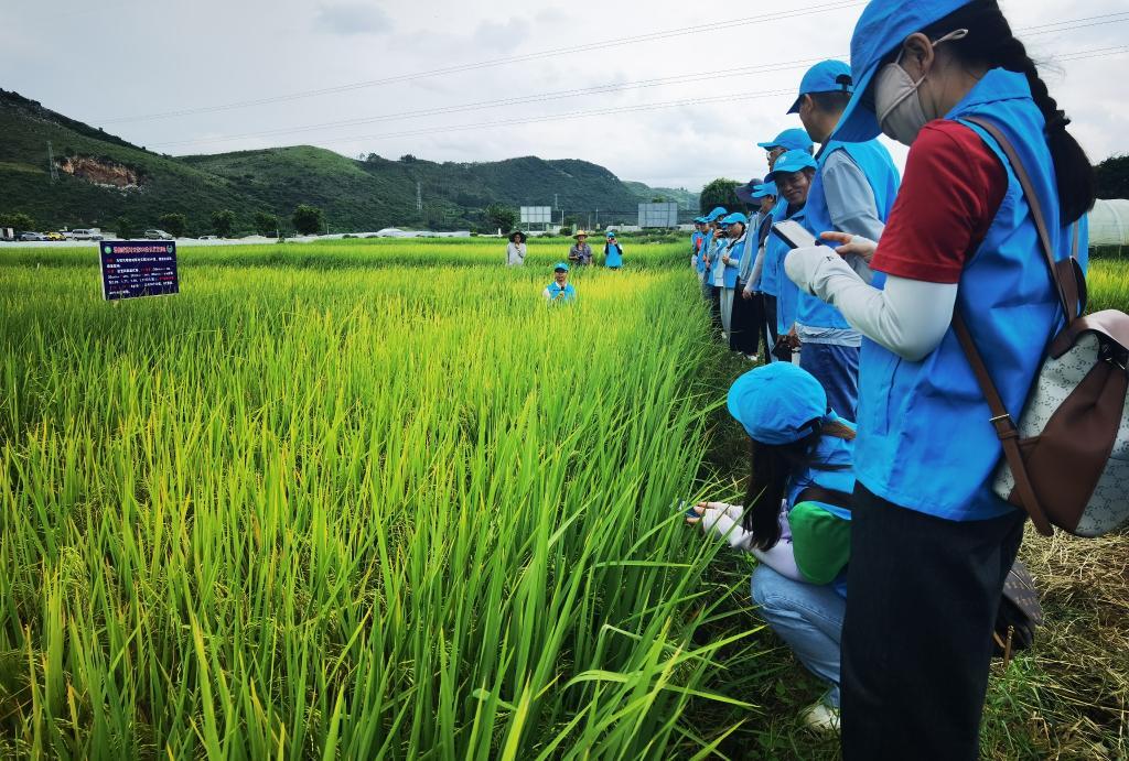 8月30日,農(nóng)科人員在臥龍谷村“云恢290”種植基地觀摩交流(受訪者供圖)