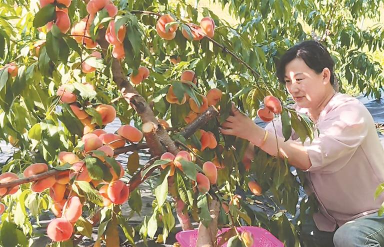 在發(fā)展特色農(nóng)業(yè)種植的過程中,阜寧鎮(zhèn)建新村與南寒村合作,在原有的4棟溫室大棚中,種植新引進的400多棵蟠桃樹,種植面積約2000平方米,經(jīng)過半年的辛勤培育,成活率達到了95%。眼下,蟠桃樹結(jié)滿了粉嫩嫩的桃子,一陣陣清甜的桃兒香撲鼻而來,讓人不禁垂涎欲滴,現(xiàn)日采摘量約50余斤。近日,阜寧鎮(zhèn)還舉辦了第二屆蟠桃采摘節(jié),當天有千余名市民及游客被蟠桃吸引,步入桃園里快樂采摘。