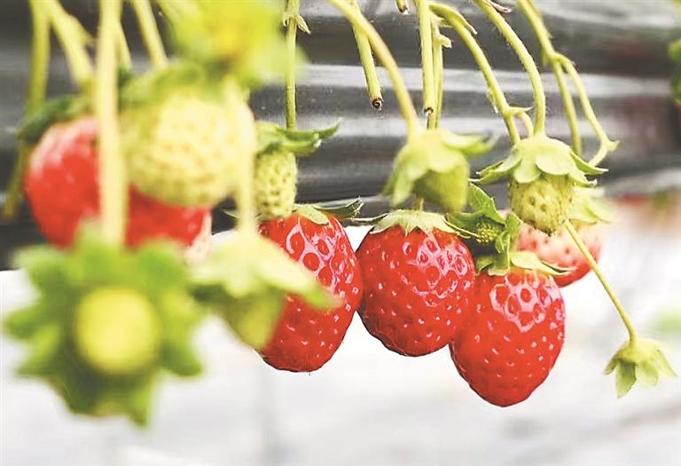 在阜寧鎮(zhèn)建新村大嶺下屯還有7棟特別的溫室大棚,大棚內(nèi)一排排田埂整齊劃一,翠綠的葉子中間綴滿了水果黃瓜和草莓柿子,果實、綠葉、黃花交相輝映。為合理規(guī)劃大棚空間,溫室大棚采用“錯茬種植、一棚多產(chǎn)”的發(fā)展模式,大棚每年可種植兩到三茬蔬菜,草莓、柿子、豆角、辣椒、菠菜、黃瓜等果蔬輪番種植,提高大棚的利用率,實現(xiàn)一棚多用、一地多季、一年多收。之后將綜合考量市場需求,采取“種植+采摘+休閑”的模式融合發(fā)展,以打造綠色、有機蔬果為目標,不斷提升蔬果品質(zhì)和知名度。