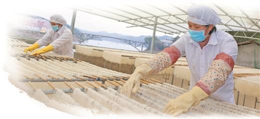 走進(jìn)羅青云公司的生產(chǎn)車間,只見磨漿機(jī)不停運(yùn)轉(zhuǎn),蒸粉皿里散發(fā)出誘人的米香,工人們正忙碌地打包、裝箱。
