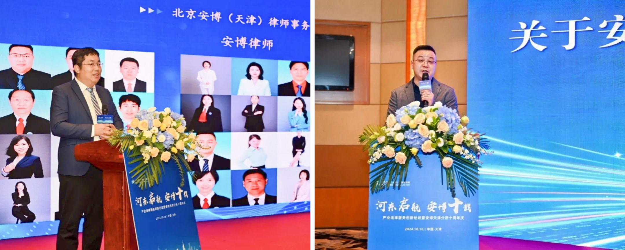 2024年10月16日,北京安博(天津)律師事務(wù)所成功舉辦“產(chǎn)業(yè)法律服務(wù)創(chuàng)新論壇暨安博天津分所十周年慶”活動(dòng)。