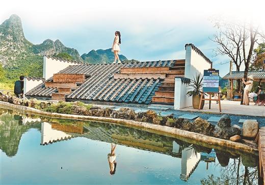 從靜謐垂釣地到熱門網紅打卡點,山鏡小院巧妙融合桂林山水意境,變身別具一格的屋頂休閑區(qū)。這一設計不僅保留了鄉(xiāng)村的原始韻味,更增添了一抹現(xiàn)代時尚氣息。屋頂上的獨特景致,讓這里名聲大噪,網友更是親切地稱其為“上房揭瓦”的趣地。