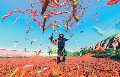 青海省海東市循化撒拉族自治縣清水鄉(xiāng)多灘地、谷地,全年日照充足,出產(chǎn)的線辣椒色澤鮮紅,“香而不辣,口味獨(dú)特”,受到大眾喜愛。正是豐收時(shí)節(jié),清水鄉(xiāng)家家戶戶在房前屋后晾曬線辣椒,構(gòu)成一幅喜人的秋日?qǐng)D景。