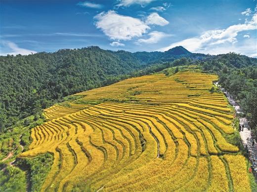 金黃的稻浪隨風(fēng)搖曳,飄香的瓜果沁人心脾,辛勤的農(nóng)人載歌載舞……晚秋時節(jié),位于十萬大山北麓的廣西壯族自治區(qū)防城港市上思縣,處處彌漫著豐收的喜悅。