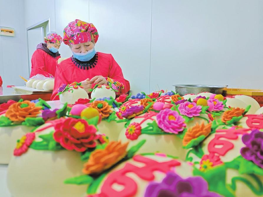 聞喜北垣花饃藝人正在進(jìn)行創(chuàng)作