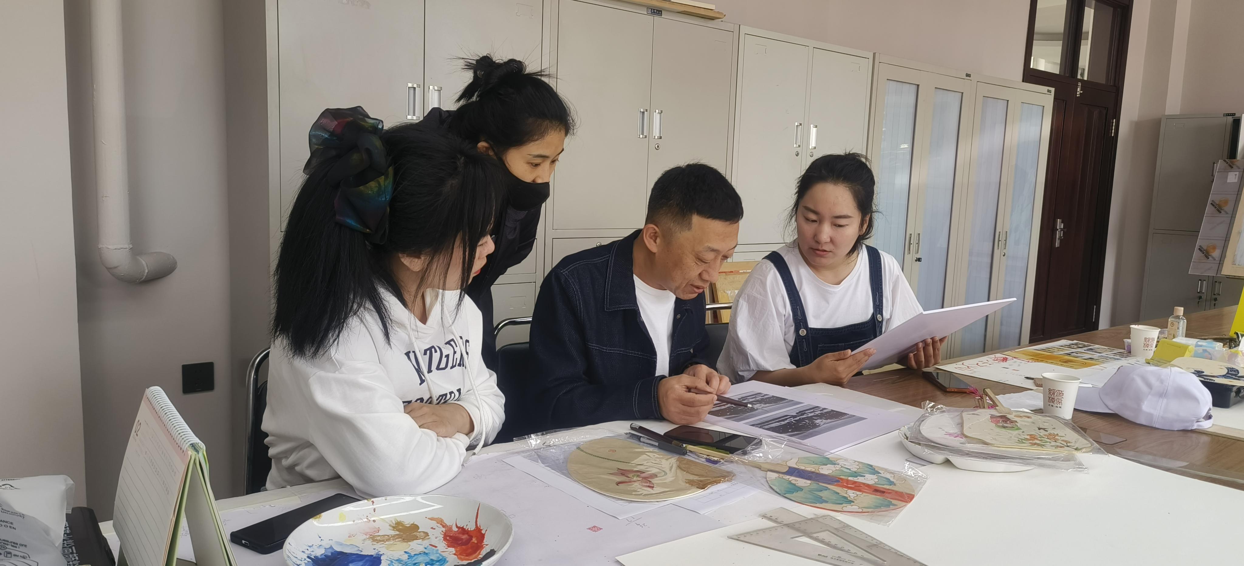 農民畫傳承人在討論農民畫創(chuàng)作(綏棱縣文體廣電和旅游局供圖)