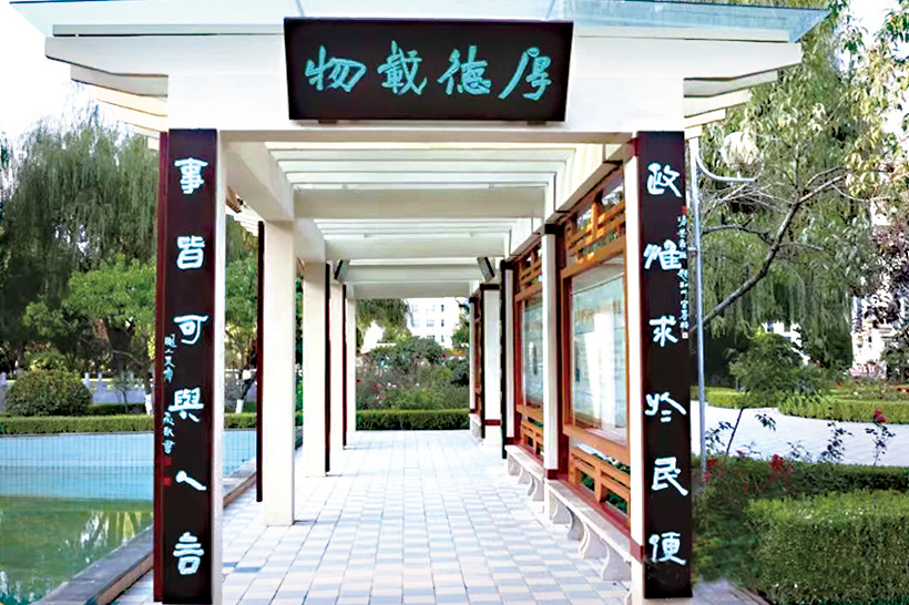甘肅臨洮人民公園憲法廣場(chǎng)一隅。清梁章鉅題荊州官署聯(lián):政惟求于民便,事皆可與人言。(朱鵬飛 書)圖片來(lái)源:青年詩(shī)詞楹聯(lián)
