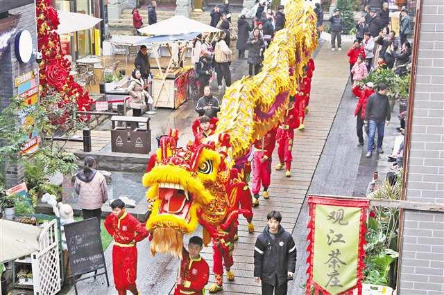 重慶高新區(qū)走馬古鎮(zhèn)用非遺點(diǎn)燃游客的熱情:春節(jié)期間,舞龍隊(duì)、舞獅隊(duì)、花船、腰鼓隊(duì)等在古鎮(zhèn)里巡游;當(dāng)?shù)卮迕褡跃幾匝莸纳徍嵨?、魚(yú)燈舞等吸引了十里八鄉(xiāng)的村民前來(lái)打卡。