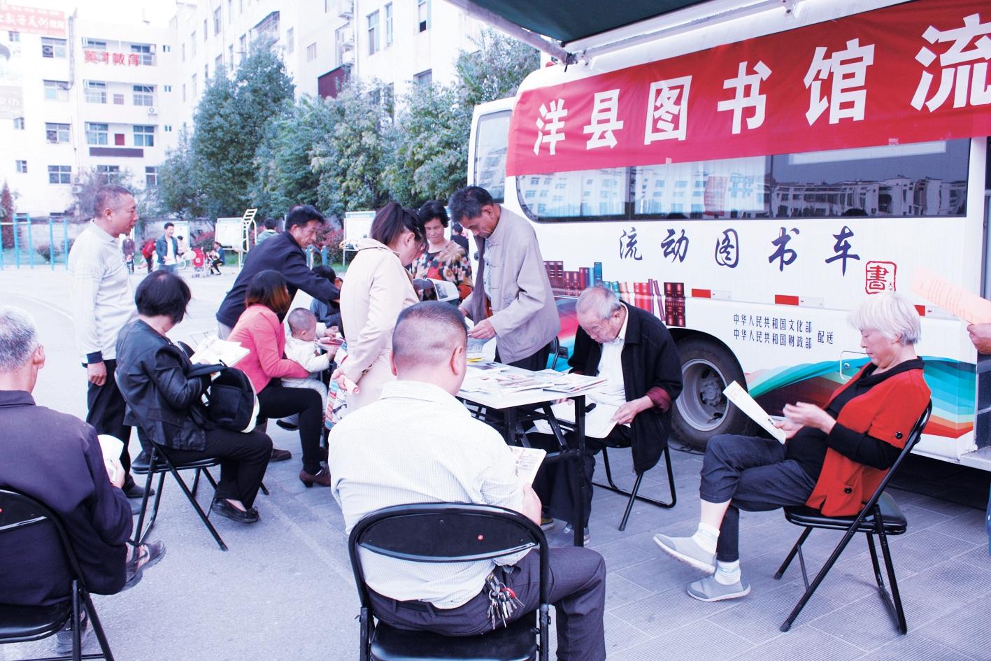 洋縣流動圖書車走進(jìn)社區(qū)(洋縣文化和旅游局供圖)