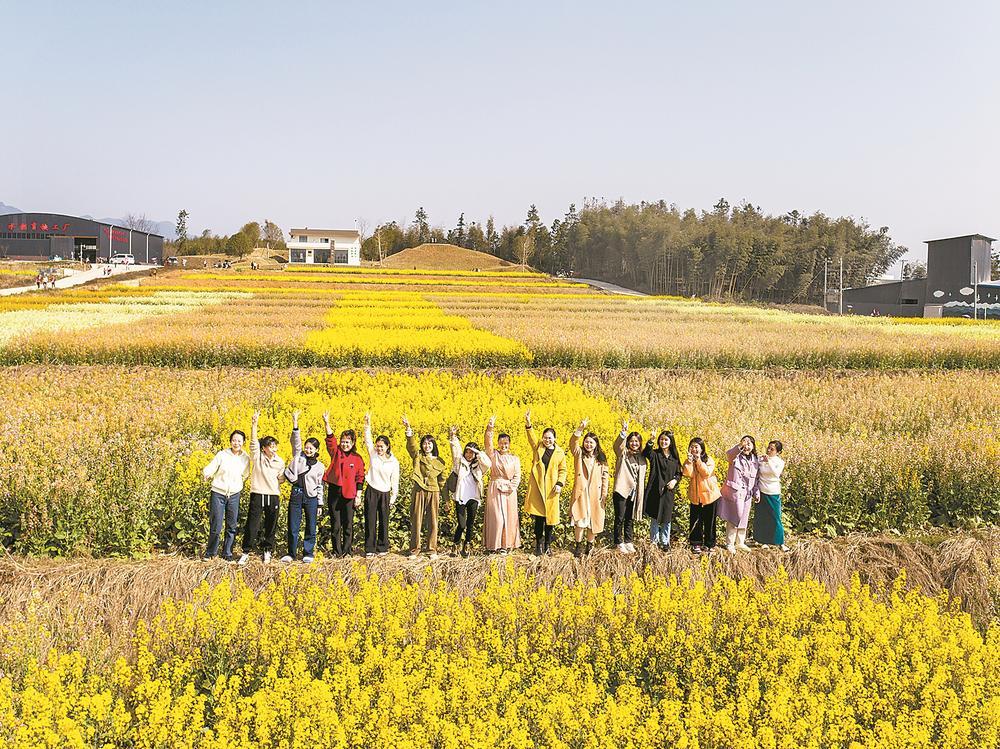 “三八”國際婦女節(jié)期間,游客在石陂鎮(zhèn)申明村油菜花田拍照留念。柳良金 攝