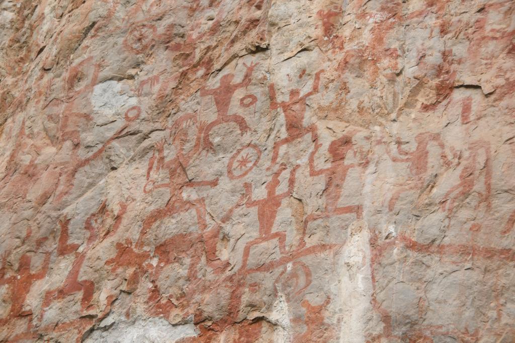 景區(qū)講解員介紹,花山巖畫面積8000多平方米,有各種圖像1900多個(gè),創(chuàng)作于戰(zhàn)國至東漢時(shí)期,距今已有兩千多年的歷史。2016年被列入《世界遺產(chǎn)名錄》,填補(bǔ)了中國巖畫類世界遺產(chǎn)空白。