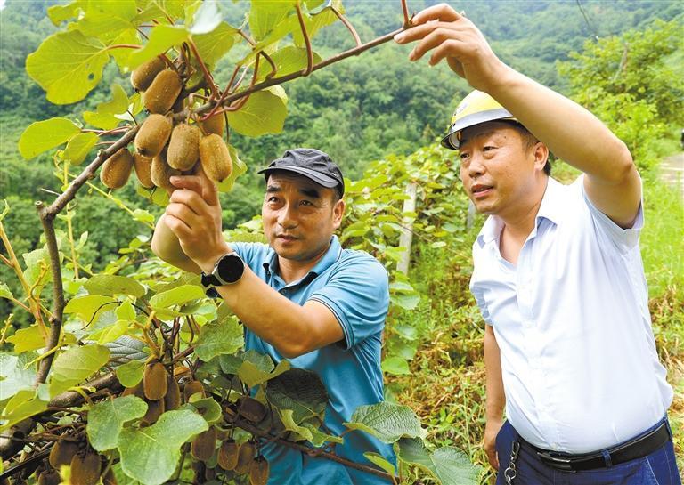 嵐皋縣高級農(nóng)藝師謝利華(左)在指導(dǎo)村民進行獼猴桃管護(資料照片)。受訪者供圖