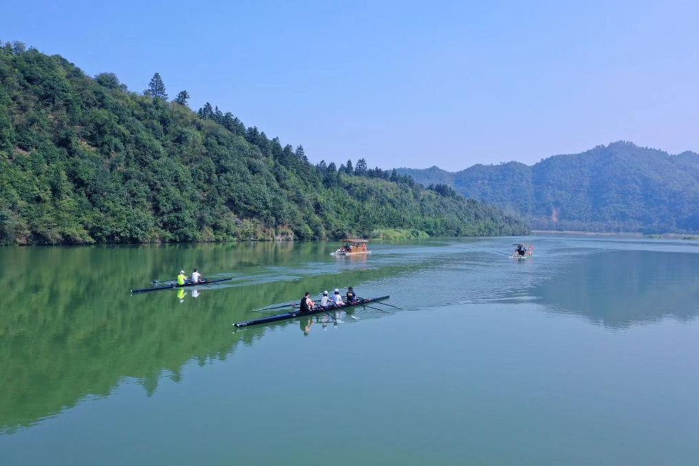 游客在平垣秘境景區(qū)內(nèi),體驗賽艇、木筏漂流等項目。新華社發(fā)
