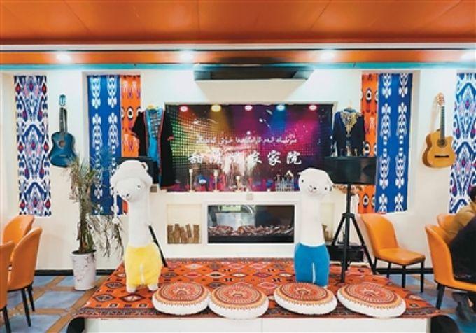 塔村內(nèi),努爾曼古麗·吐爾遜經(jīng)營(yíng)的“甜滋滋農(nóng)家院”,院內(nèi)裝飾民族風(fēng)情濃郁。記者 丁美棟 攝