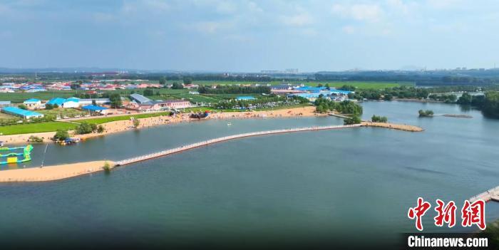 航拍“草原小三亞”——神駿灣生態(tài)體驗區(qū)。烏蘭浩特市委宣傳部供圖